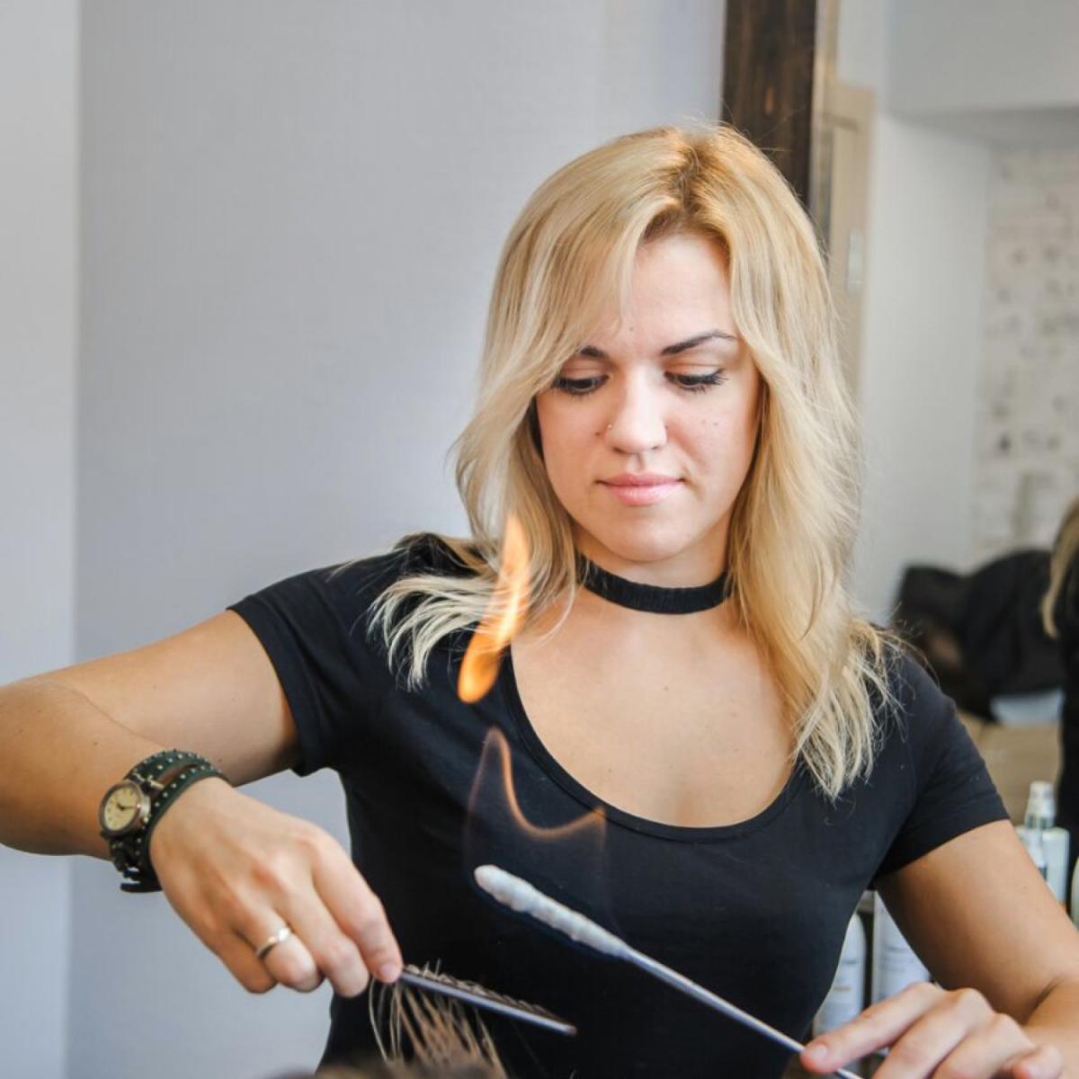 ✂️Работа с секущимся концами и по всему полотну волоса с помощью Огня.